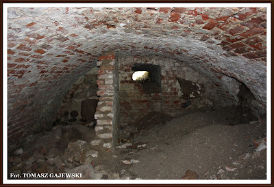 Na terenie przedzamcza wewnętrznego, w pobliżu dawnego spichlerza natrafiliśmy również na piwnice, do których oczywiście postanowiliśmy się wśliznąć. Podejrzewam, że w okresie letnim moglibyśmy przeoczyć do nich wejście, gdyż byłoby one zupełnie niewidoczne, ze względu na bujne zarośla.